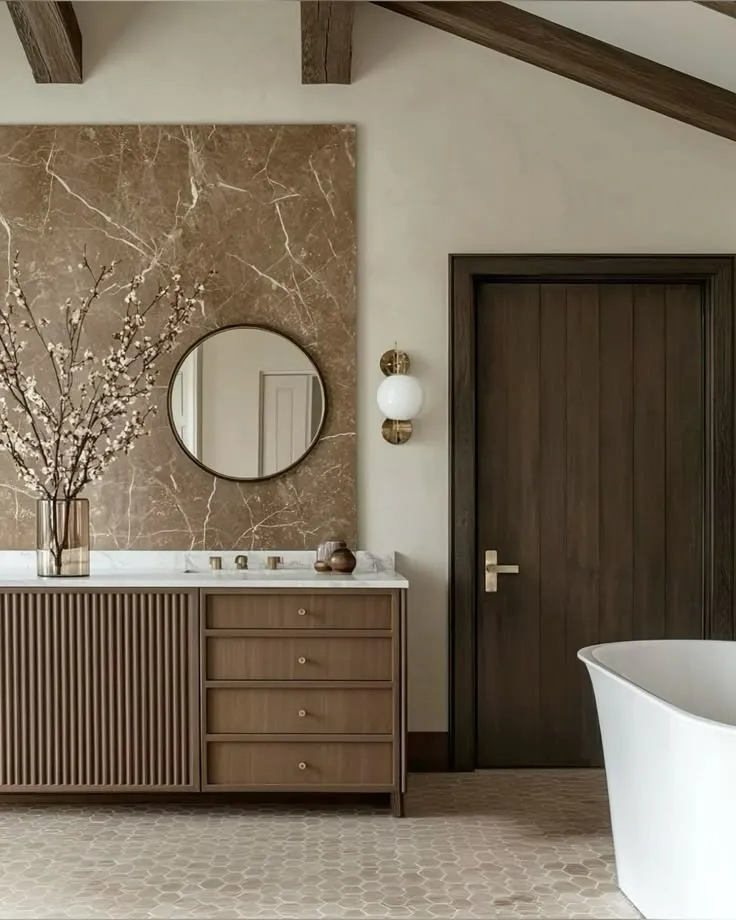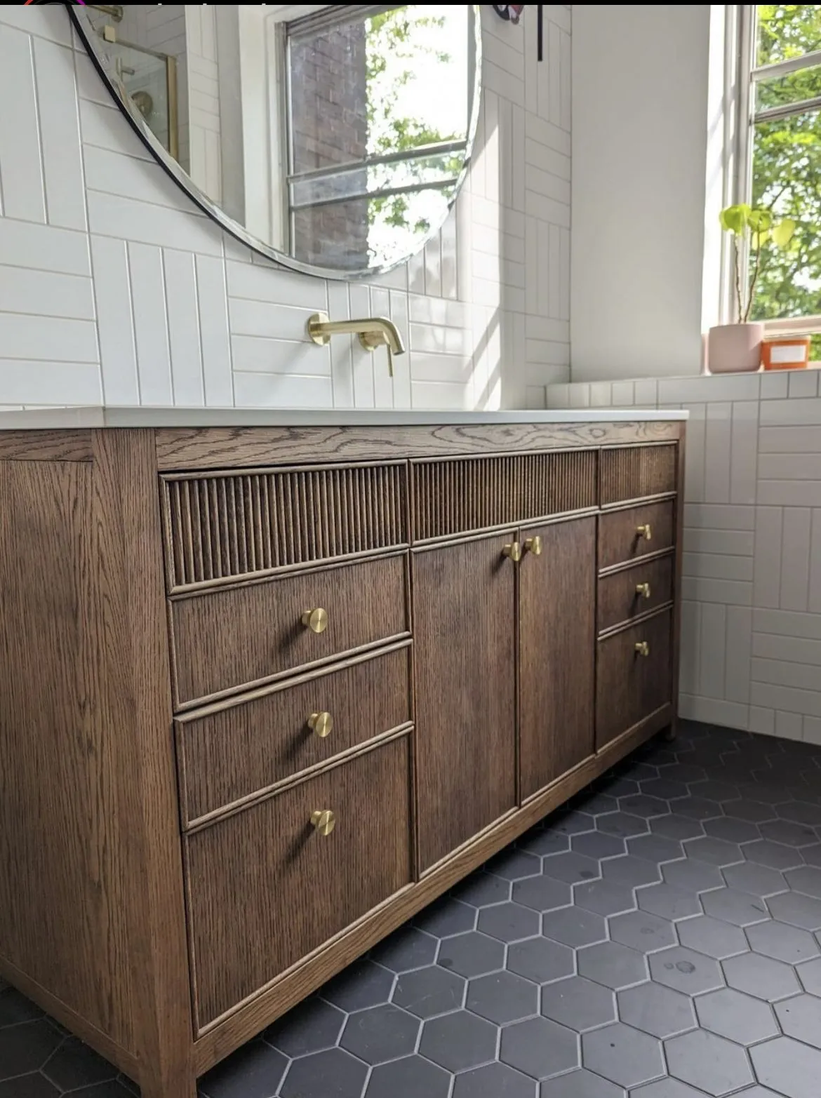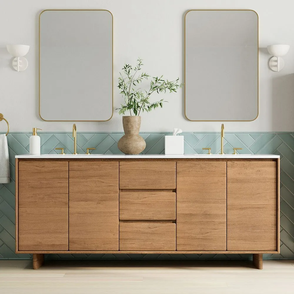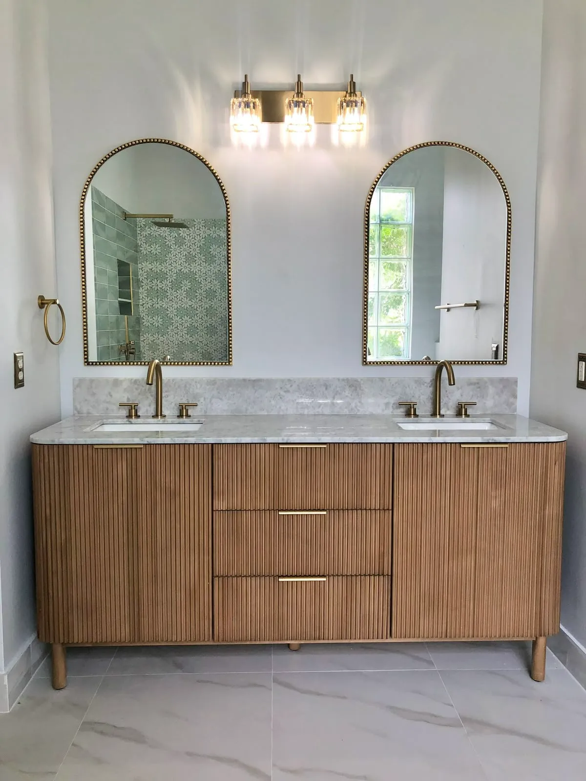 Classic Fluted Wooden Waterproof Bathroom Vanity Cabinet Luxury Hotel Modern Style Floor Standing Bathroom Cabinet