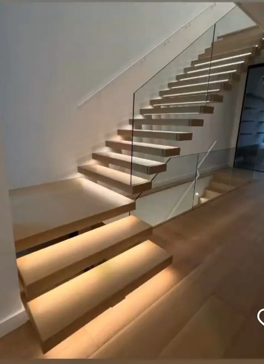 Factory Interior Steel Stringer Wooden Treads Floating Staircase With Glass Railing