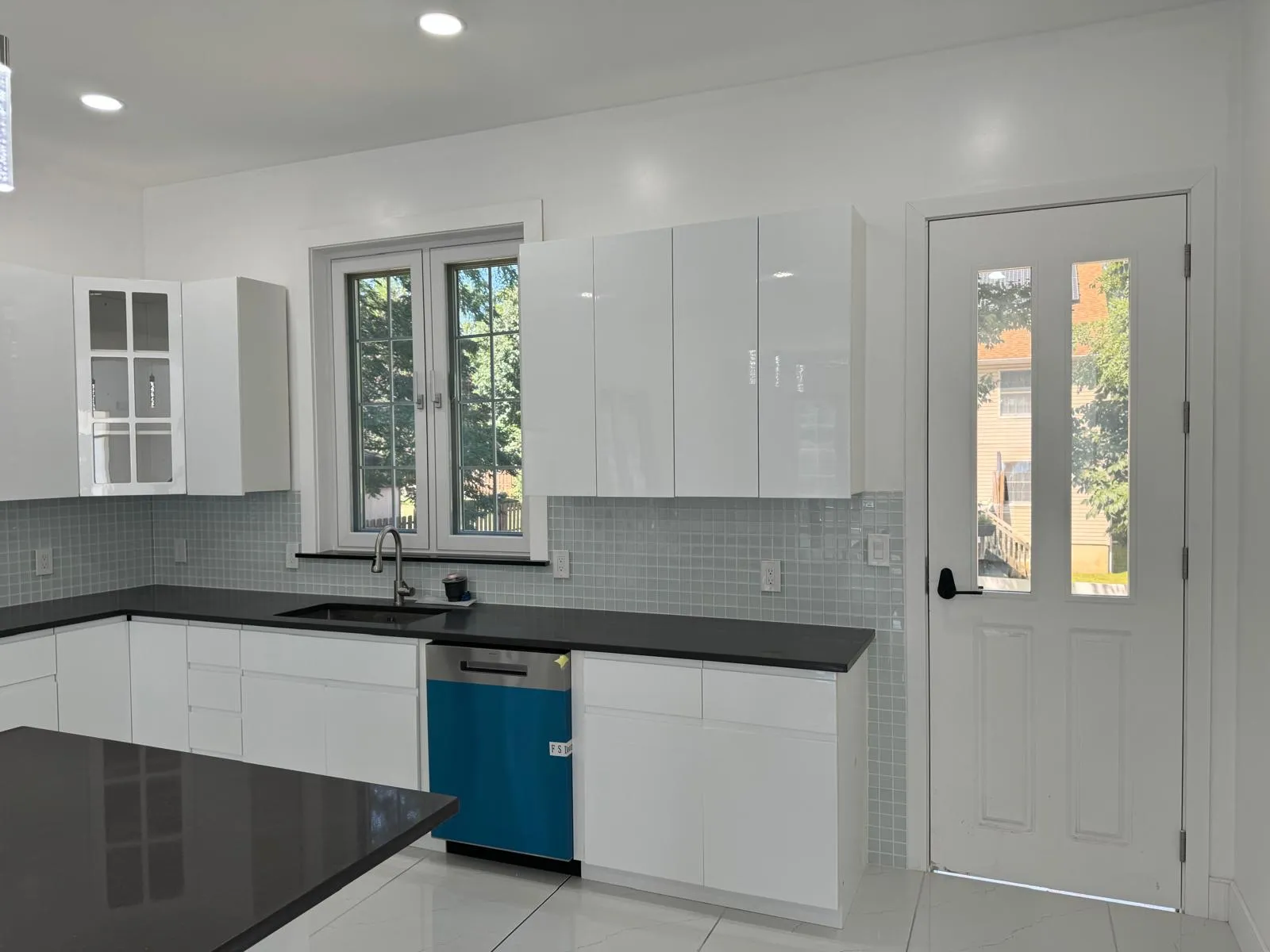 | Door Panel Material | High Gloss Plywood Kitchen Cabinet with Quartz Countertop |
