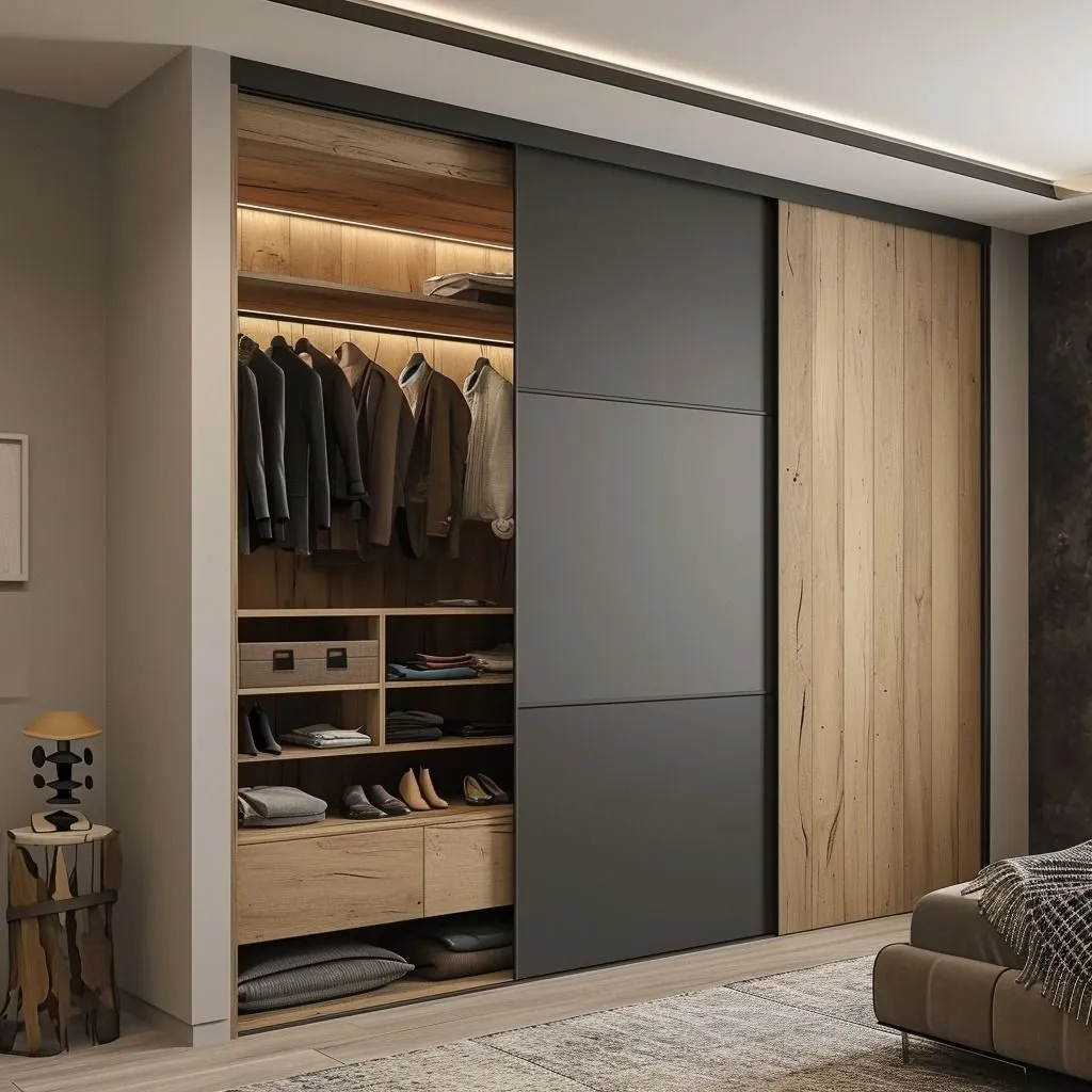 Hot Product Minimalist Design Bedroom Sliding Door Wardrobe Solid Wood Panel Designs Sliding Door Storage Closet